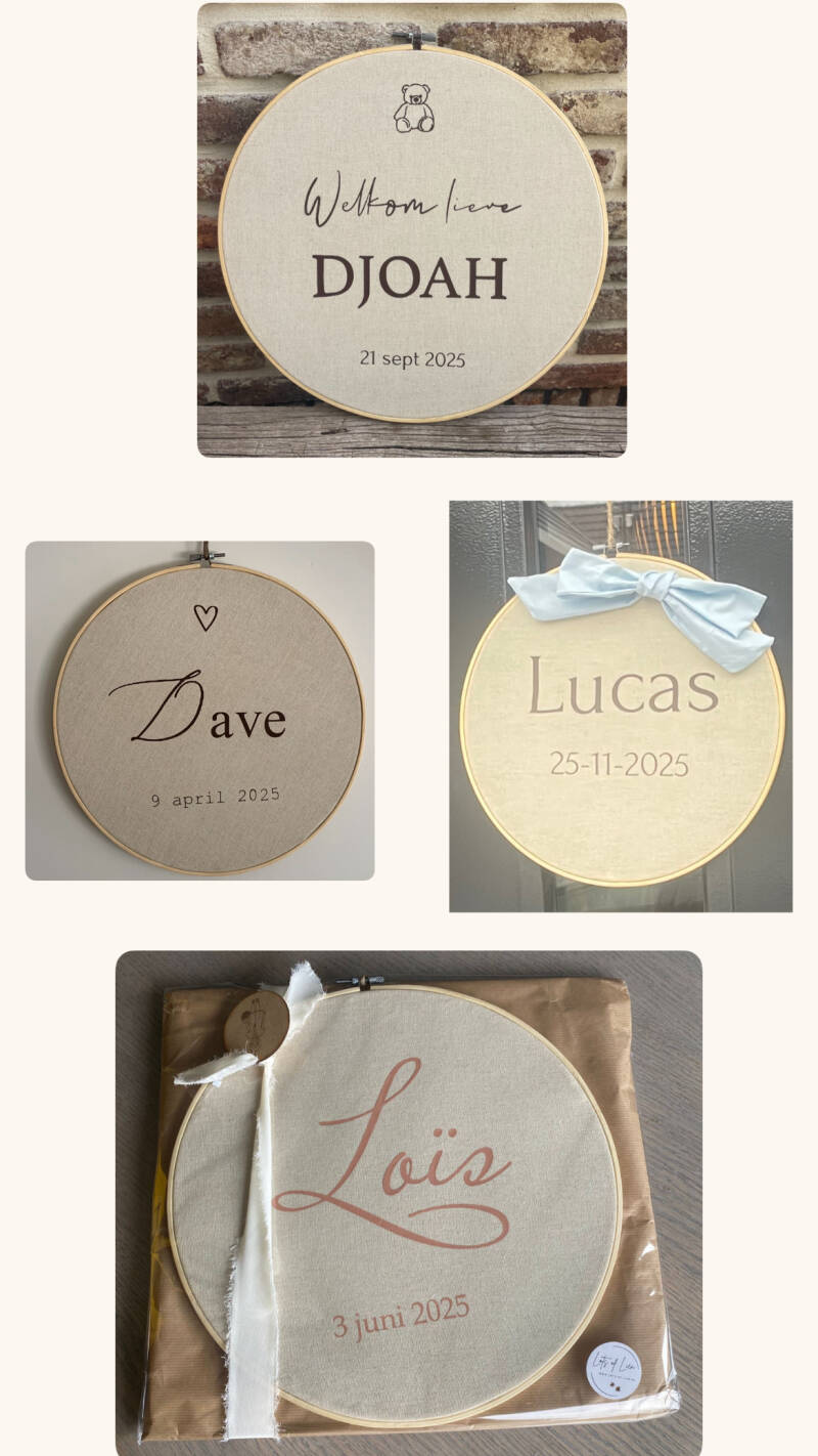 Kan gemaakt worden met verschillende teksten. En we hebben meerdere maten. Ook leuk om naam datum gewicht enz erop te zetten. Zoals afgebeeld €14,95