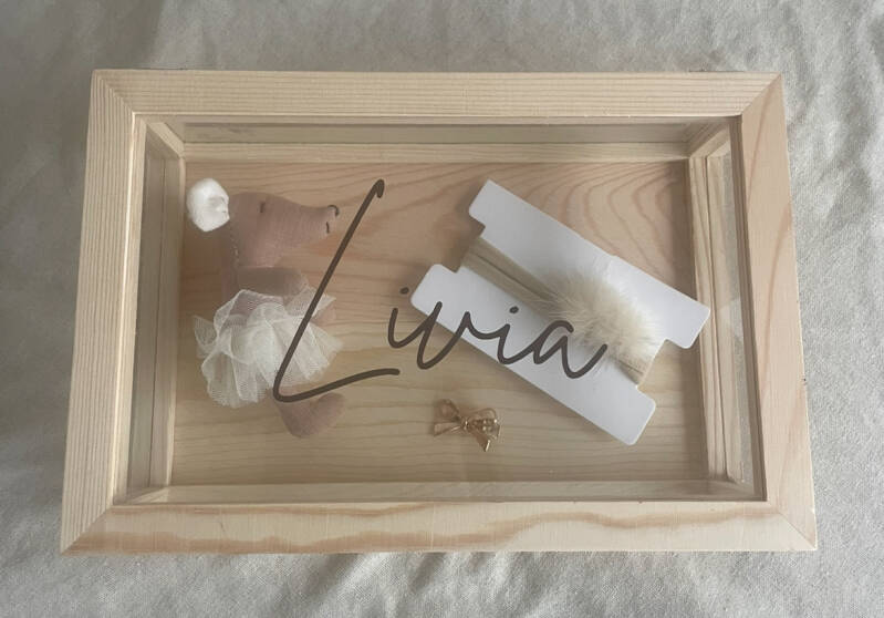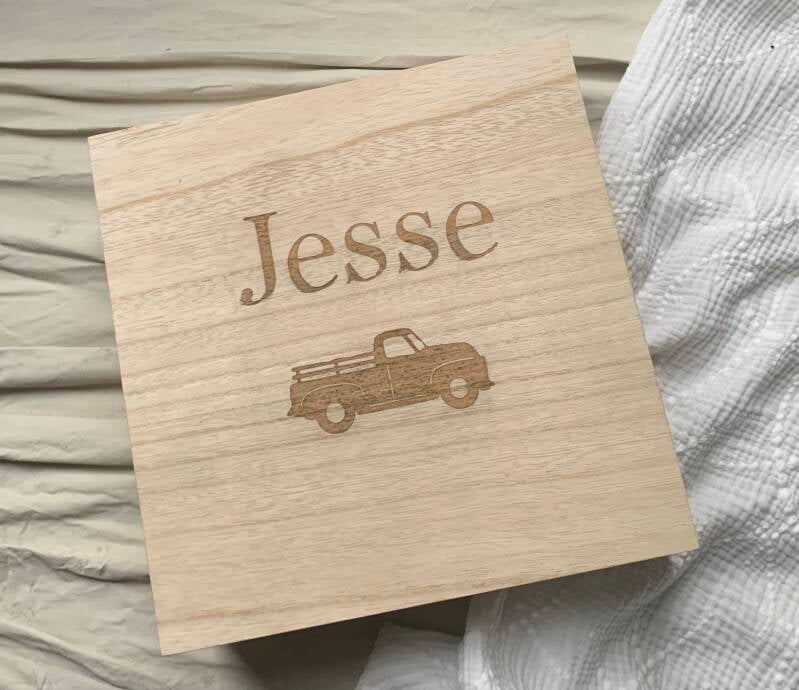 Houten herinneringen box 25x25cm leverbaar met diverse lettertypes en plaatje stuur een berichtje voor meer info. Per €15,95